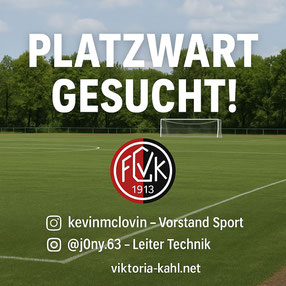 Der FC Viktoria Kahl sucht ab sofort einen engagierten Platzwart (m/w/d) zur Unterstützung rund um unseren Vereinsplatz! 💪